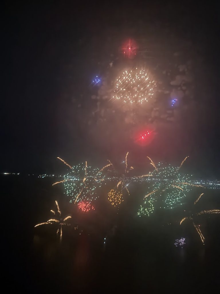 ホテルから見る綺麗な初日の出と 花火が最高でした。