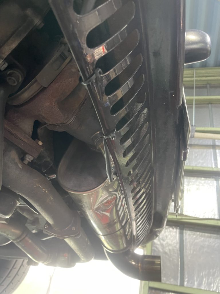 現状のマフラーだと当然車検は通らないのでノーマルマフラーを着けようとしてもタコ足が邪魔して取り付け出来ない車両です。